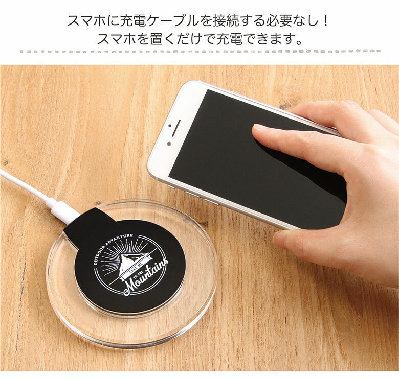 当店オリジナル商品 Label ワイヤレスチャージャー 置くだけ充電 スマートフォン iPhone X iPhone8 iPhone8 Plus Galaxy スタイリッシュ オシャレ アウトドア風デザイン ブラック 黒 クール スタイリッシュ クリア 丸型 無線 便利 メンズ レディース